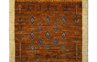 ギャッベ独特の赤が印象的な絨毯。赤は茜の木の根を使って草木染され、独特の風合いを出しています。しだれ柳や糸杉など、樹…
