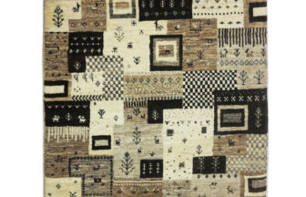 ザクロの皮で草木染めした黄色と無染色の色のシンプルな柄で、伝統的なひし形をボーダーにあしらったデザインです。スタンダードクラスのギャッベでしっかりと厚みもあります。