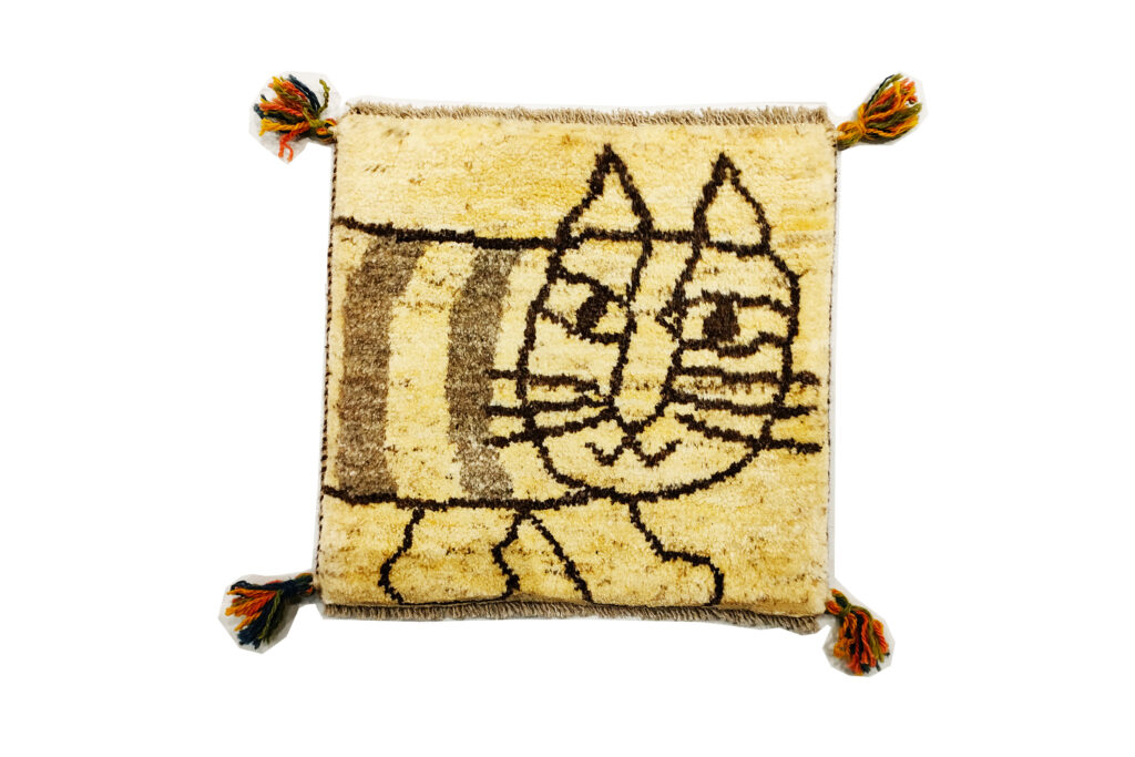 可愛らしい表情の猫の作品です。似た作品はありますがどれも表情が違い楽しいです。ソファの上やお座布団としてお使いいただけます。