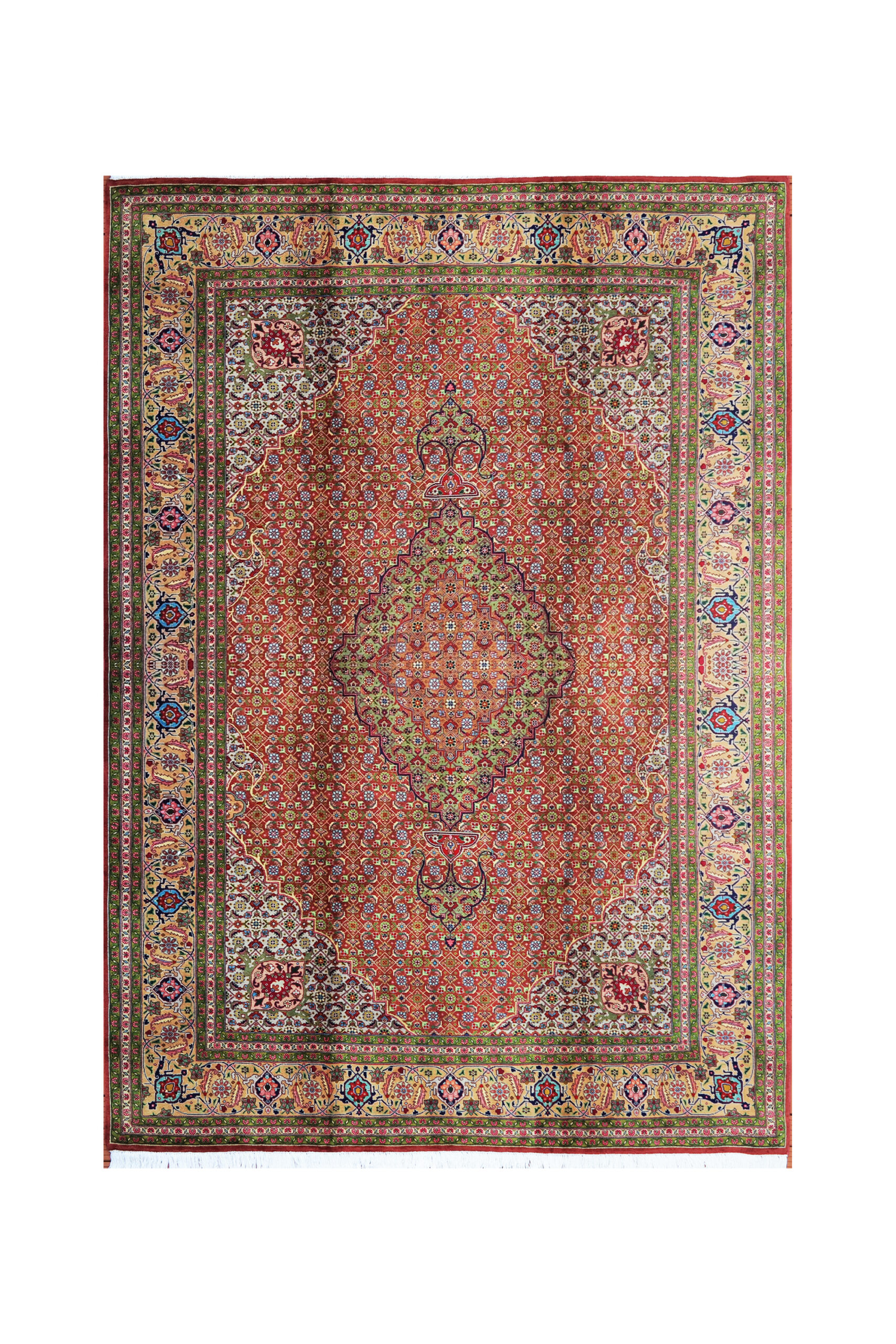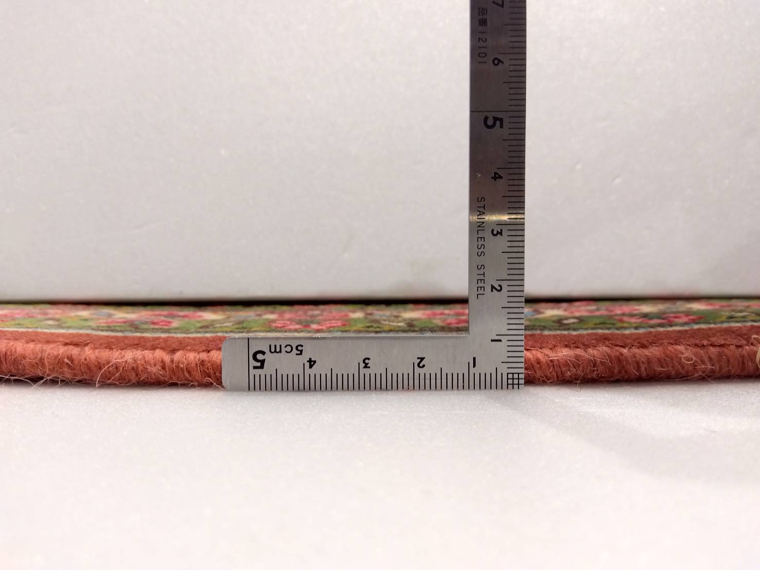 アイボリーにベージュ、茶、レンガ色、グレーを基調とした落ち着きのある色合い。規則的なパターンが整然と並んだ細かな柄なので敷く場所を選ばずに合わせられるタブリーズ産の絨毯です。ライトな色調なので、暗くなり過ぎずソフトにお部屋に馴染みます。生地の厚みもしっかりあり、リビングでもダイニングでも普段使いにも快適に使って頂ける丈夫な絨毯です。