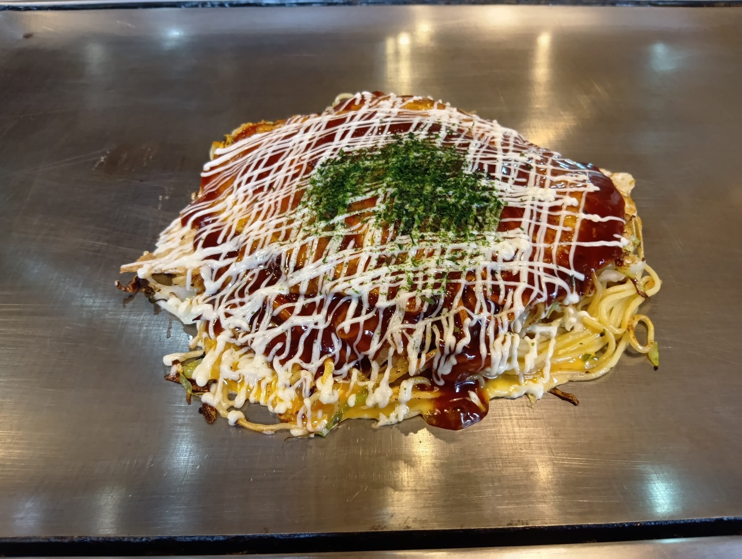 名物の竹原焼(ご当地グルメである酒粕が生地に練り込まれてあるお好み焼き)とても美味しかったです