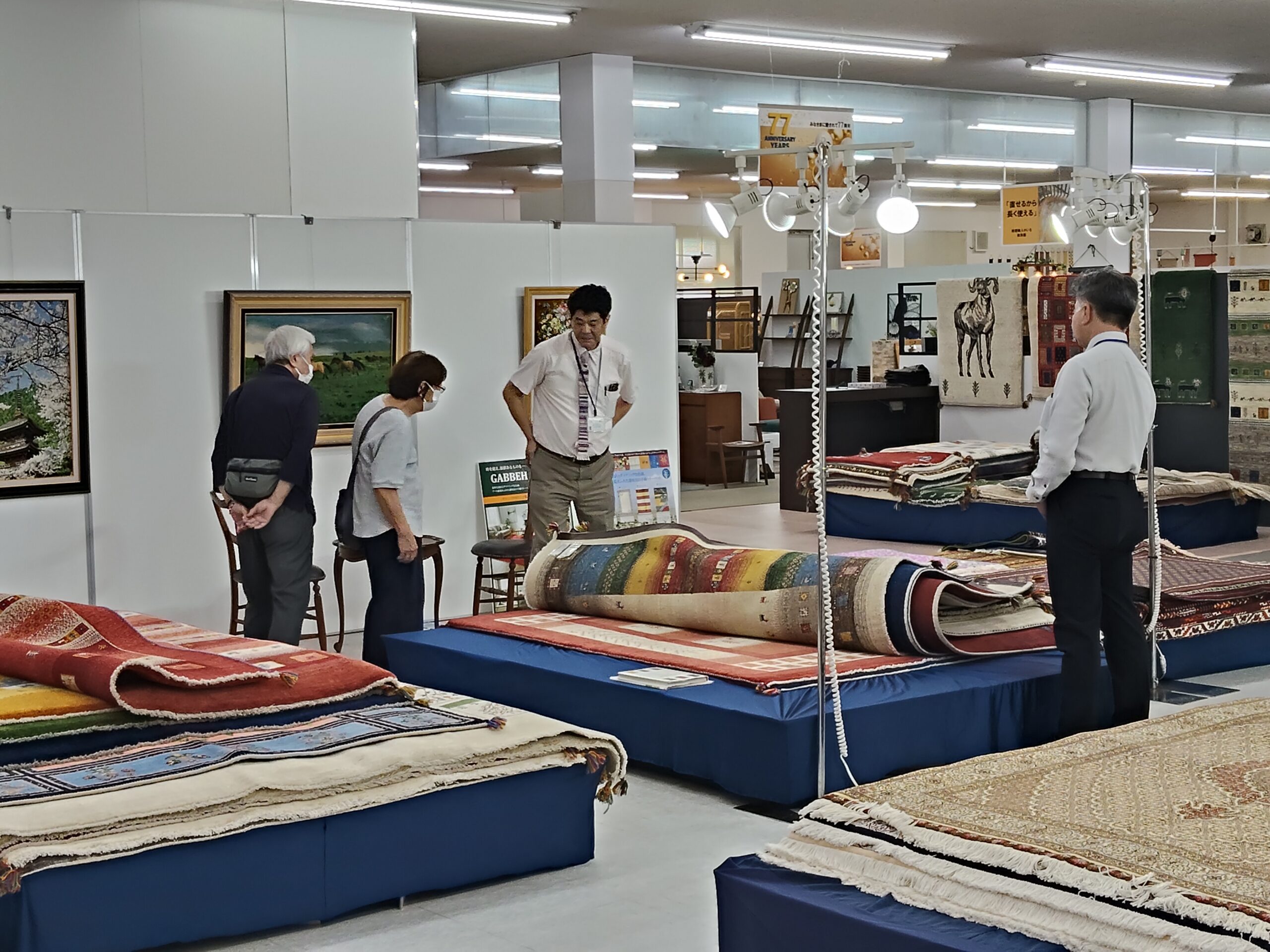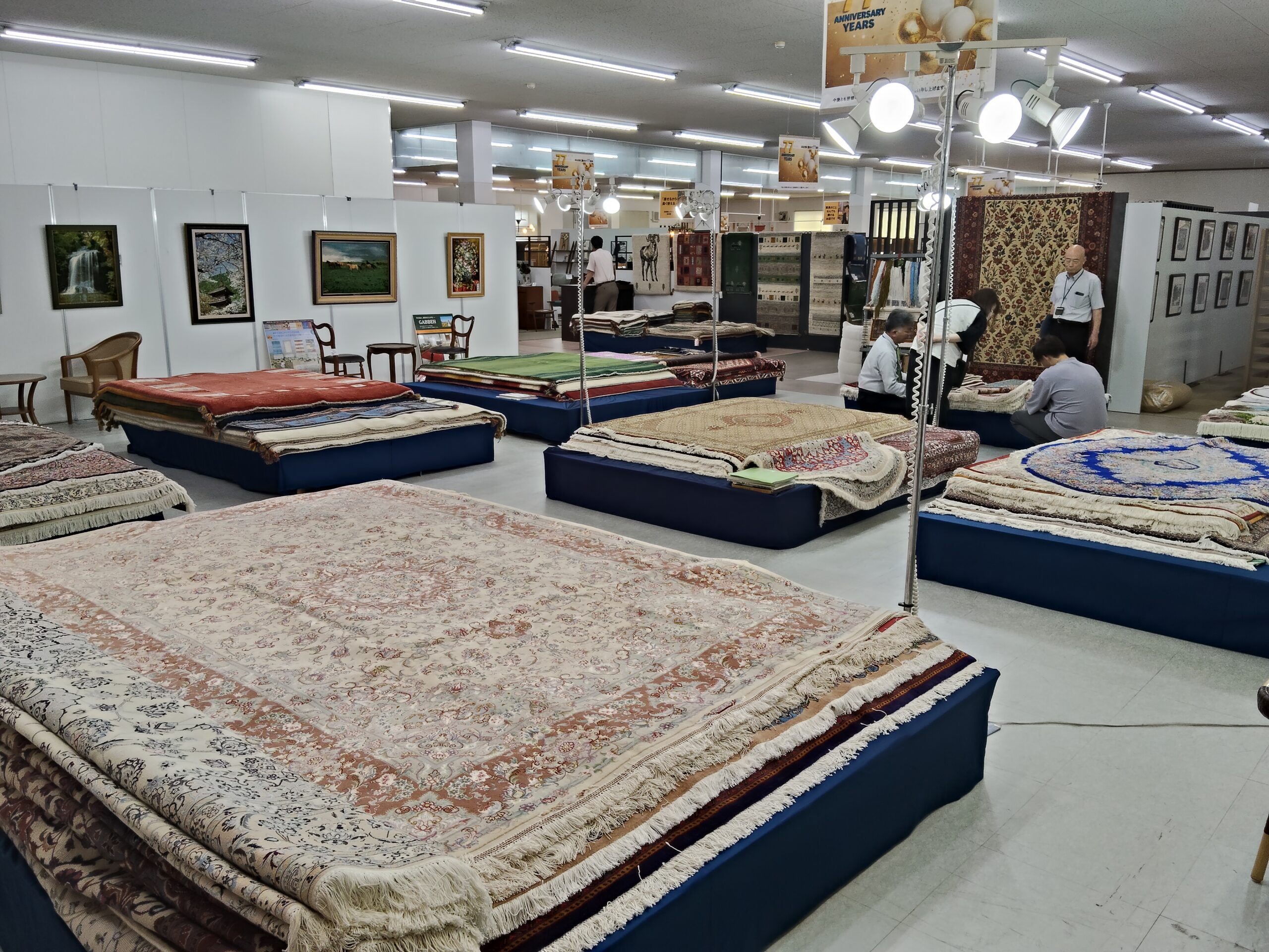 こだわりの絨毯をはじめ、豊富な商品を取り揃えた会場でお客さまに喜んでいただけるよう、頑張っています![]()